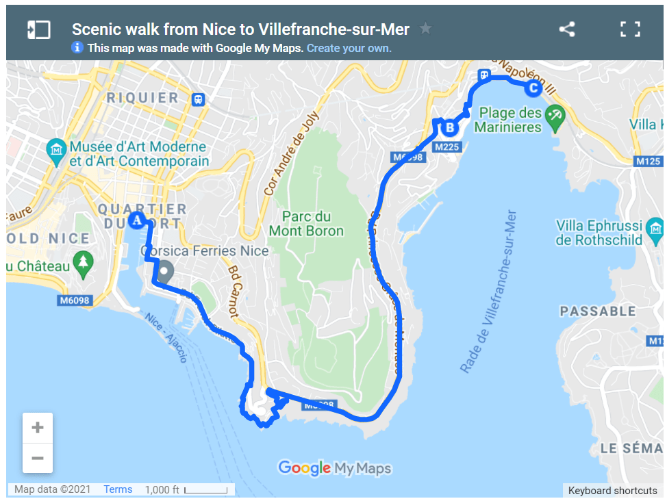 Visit Villefranche-sur-Mer – we hiked the scenic route into this cute village using a great blog from SWTliving. It’s 6 kilometers and 1.5 hours from Nice one way. We got a little overzealous and added this route on our way to the Cap Ferrat hike. By the end of the day we hiked over 10 miles! Sorry, Mom!