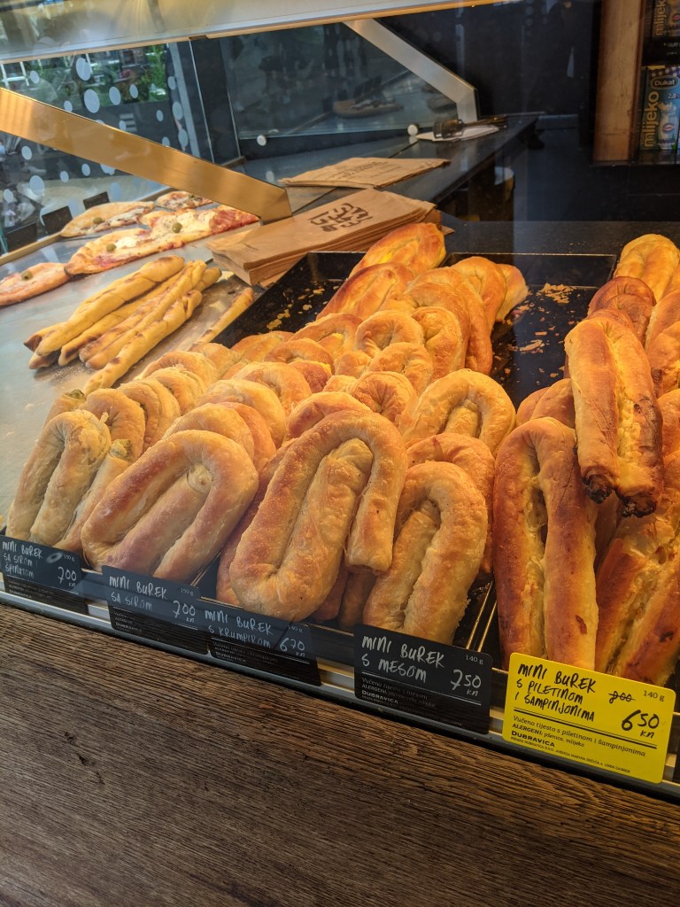 Dubravica– best bakery (“pekara”)in Zagreb! My favorite was the mini burek with meat because it reminded me of a Russian pirozhok. One of these and you are full for less than $1.50 USD. Korica is another option!