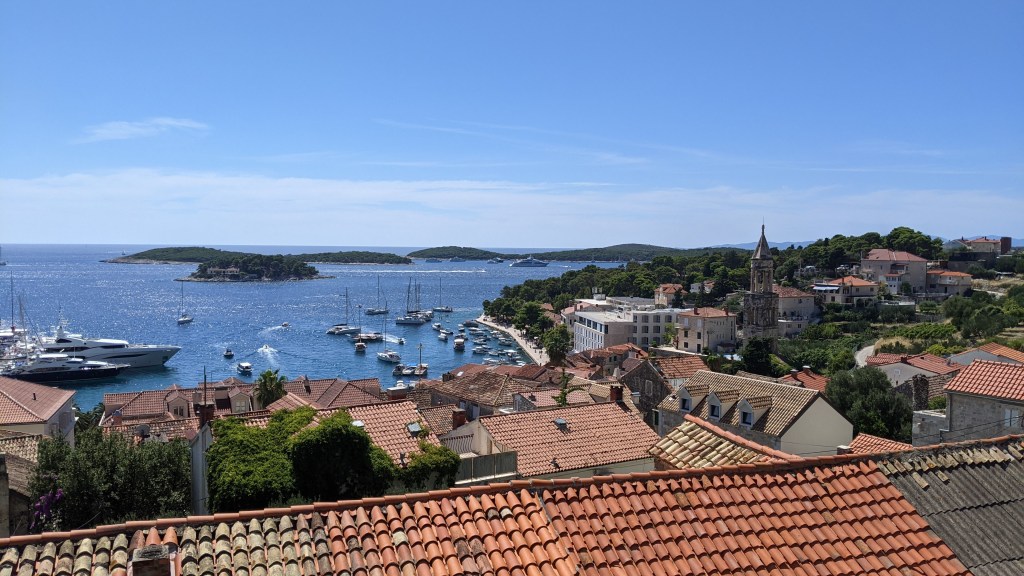 One of the top Airbnb’s we’ve stayed in simply because of the view overlooking the harbor of Hvar Town. The house is located on the road under the fortress, just couple of minutes walking down to the main square so the location was perfect! Completely worth the 150 stairs uphill that we had to climb to everyday. Word to the wise: pack light in Hvar (carry-on size). Hvar Town is small and walkable, but full of elevation changes and stairs. We left our bigger checked bags in Split with a luggage storage company.