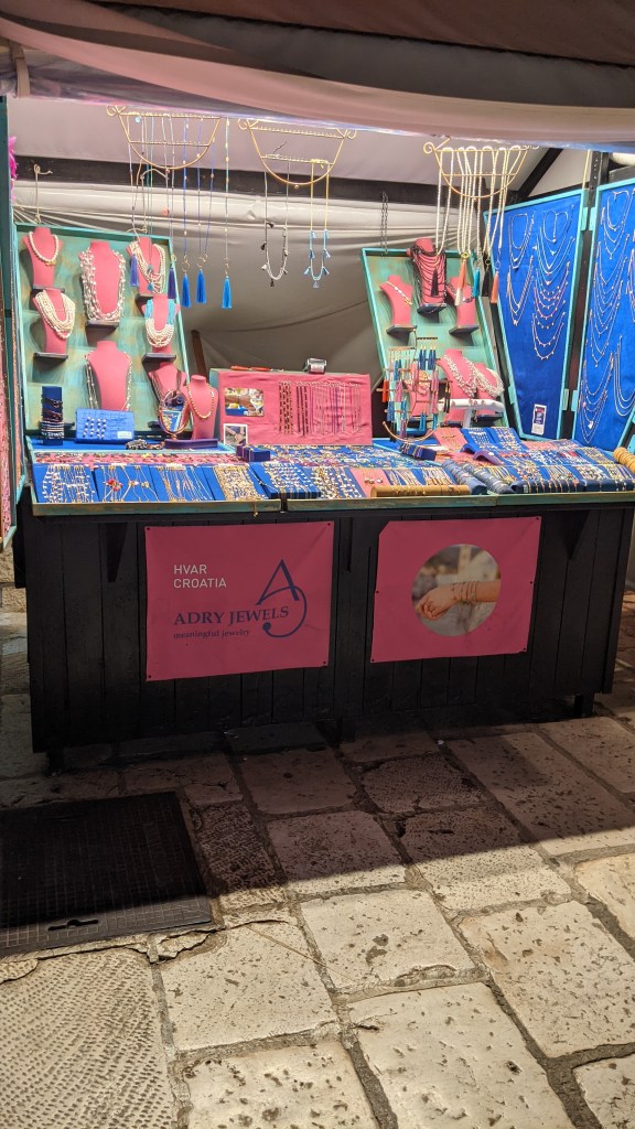 You’ll spend majority of your time at sea or relaxing on a beach, but that doesn’t mean there isn’t time to shop. Art N, is a nice clothing store that specializes in high quality fabrics like silk, located next door to Hvar Adventure. Adry Jewels was my go-to for gifts for my friends and family back home, located among the other stands near Central Park Club. They have the cutest Hamsa necklaces and bracelets.