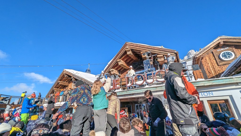 Poor visibility and dumping snow prevented us from “aprèsing” on the mountain, but the sun finally came out on the last day so we headed to the famous Le Folie Douce – Meribel. Expect to pay €7,50 for a small 25cl beer or €17-€25 for a glass of champagne. Honestly, I thought the prices would be higher.