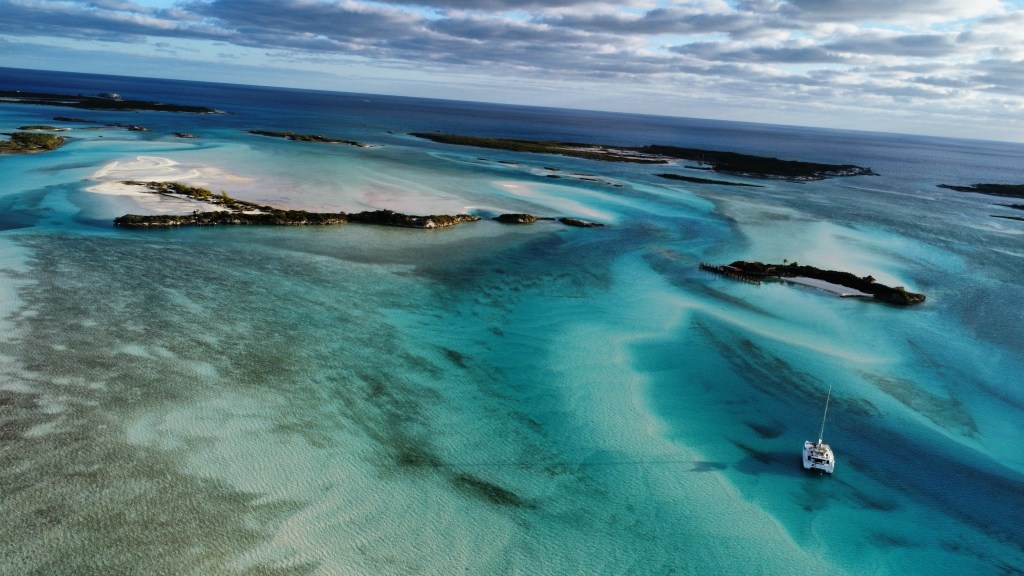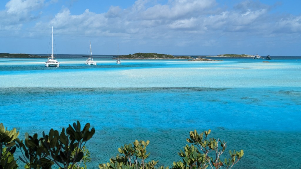 Shroud Cay – This northernmost cay in the Exuma Cays Land and Sea Park is known for its naturally occurring lazy river, called the “Washing Machine”. Once you anchor, you’ll take the dingy about 15 minutes through the mangroves to the uninhabited island for more secluded beaches. Sadly, we have no pictures from this cay.