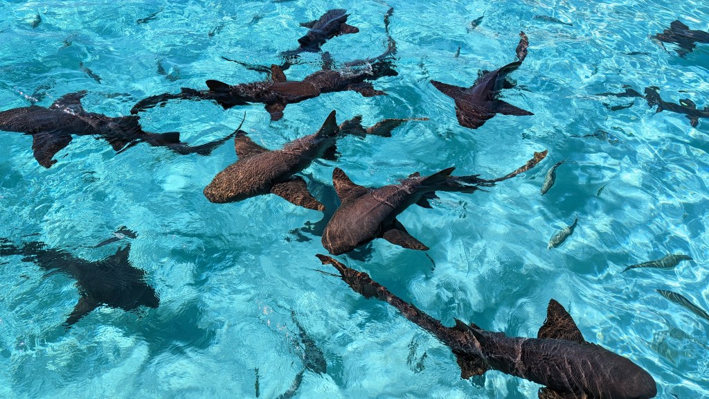 Exuma Cays Land and Sea Park – after a few days on water, it’s nice to be on solid ground and explore this park on foot. You’ll need to pay for the mooring ($1 per inch of your boat) and $15 entrance per person, but the hike is nice and water is crystal clear with several sandbars. There is even a sunken boat for snorkeling. Just beware, you’ll be swimming with the sharks really anytime you are in the water. I was surprised how many sharks we saw everyday. They are mainly nurse sharks, but one day our friends were in the water with a 7 foot bull shark. Yikes!