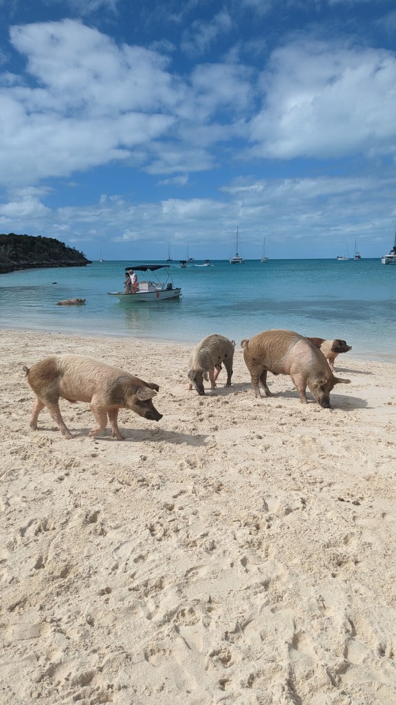 Staniel Cay – Swim with pigs! Originally here for remote farming, these piggies have stayed on the island for tourism. Just west from the pigs is Thunderball Grotto. You’ll have to find the hidden entrance underwater, but it opens up once you get inside. It’s really fun to see all the coral and colorful fish. Bring your fins!