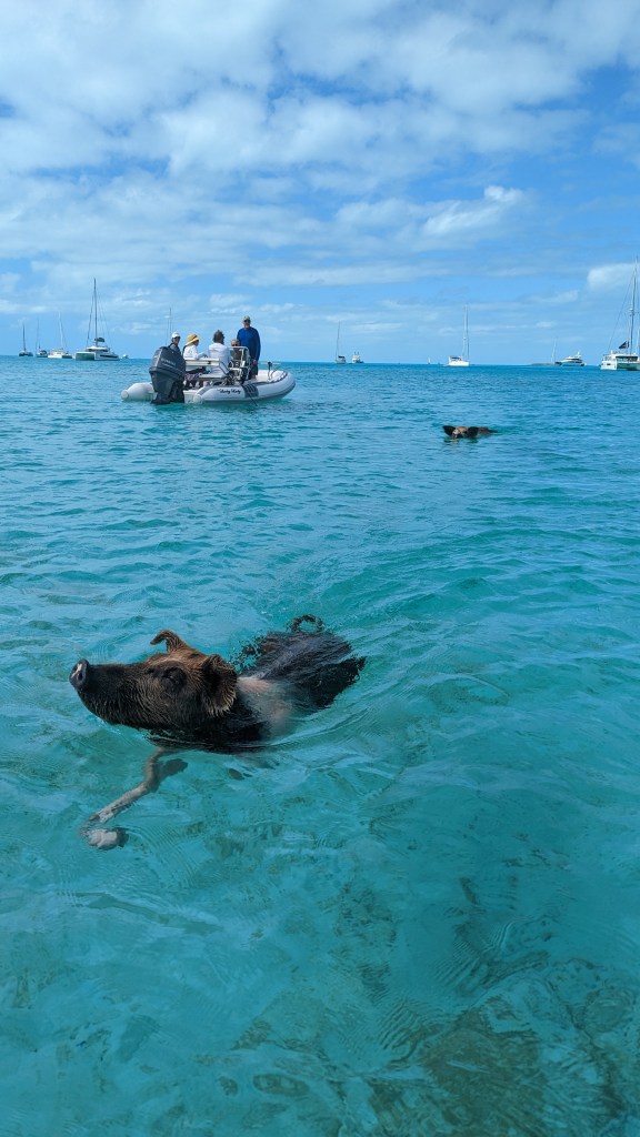 We were lucky to attend the first annual “Flotilla“, where 14 boats tied together for a day party! Our captain found an IG post from a group of people who connect and arrange crossings to the Bahamas from the Florida coast. Lots of fun since we didn’t see anyone else while sailing!