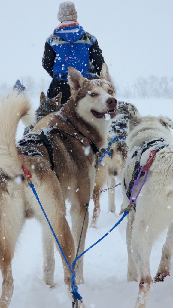 Dog Sledding – the highlight of the trip! Since I’m writing this blog in the off season, our tour link is unavailable, but I think all dog sledding tours are quite similar. There was a big snowstorm in Tromso when we visited so there was a ton of fresh powder while sledding. So much that sometimes the dogs needed an extra push from the driver. You get ample time to drive the sled, switching drivers half way through the adventure.