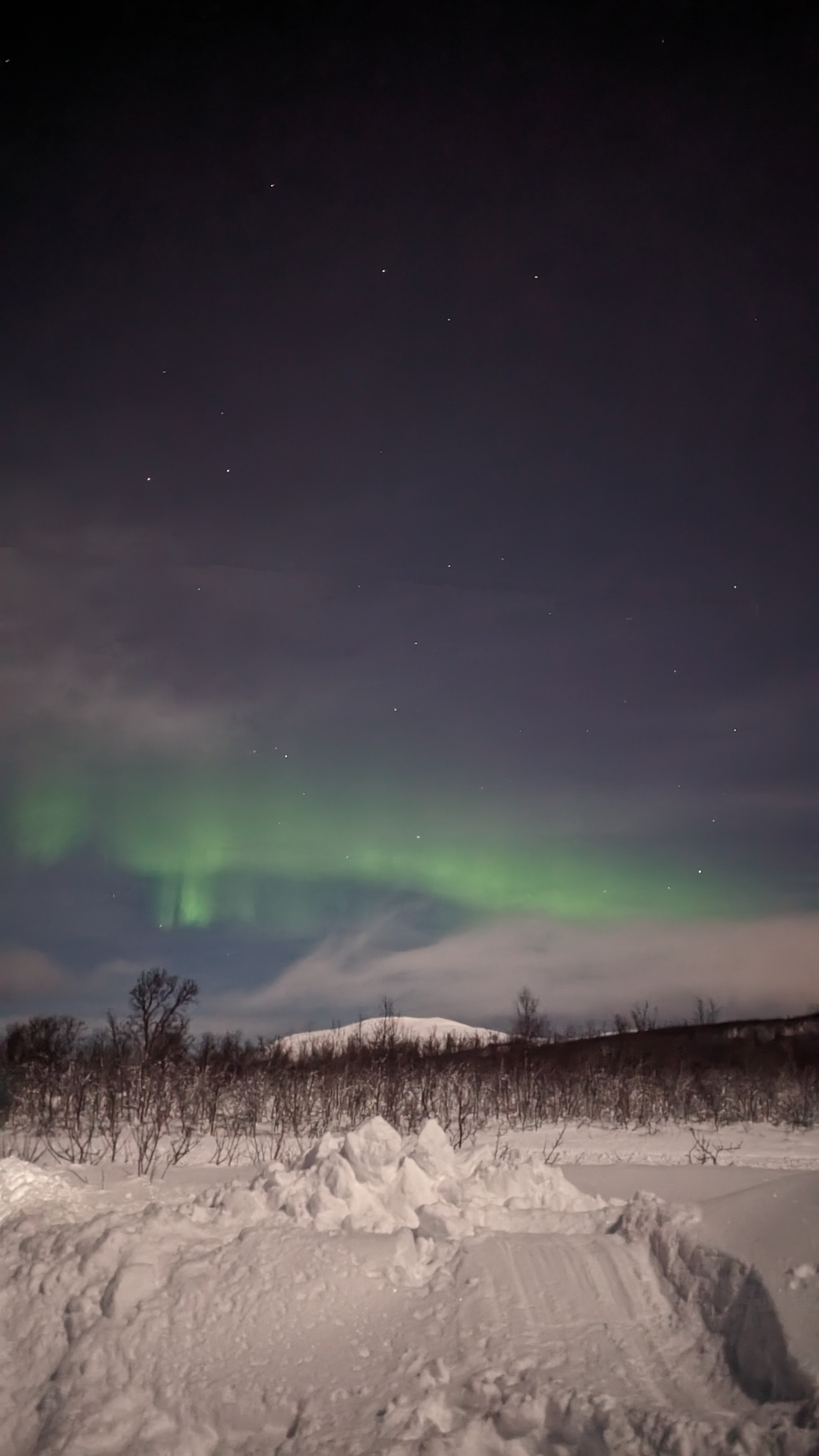 I can’t recommend Arctic Circle Tours Tromso enough. The guide is also a photographer, who sends you all the photos the next day, and she sets up a nice camp area with a bonfire to keep warm and cook reindeer sausages. Plus, they give all guests a next chance guarantee, which means that if you don’t see the northern lights on the first trip, you get another opportunity for a 50% discount – given there’s space and availability. We were determined to see the lights and booked multiple tours in advance with a flexible cancellation policy. Two nights prior we chased the Northern Lights into Finland with another tour operator, unsuccessfully.